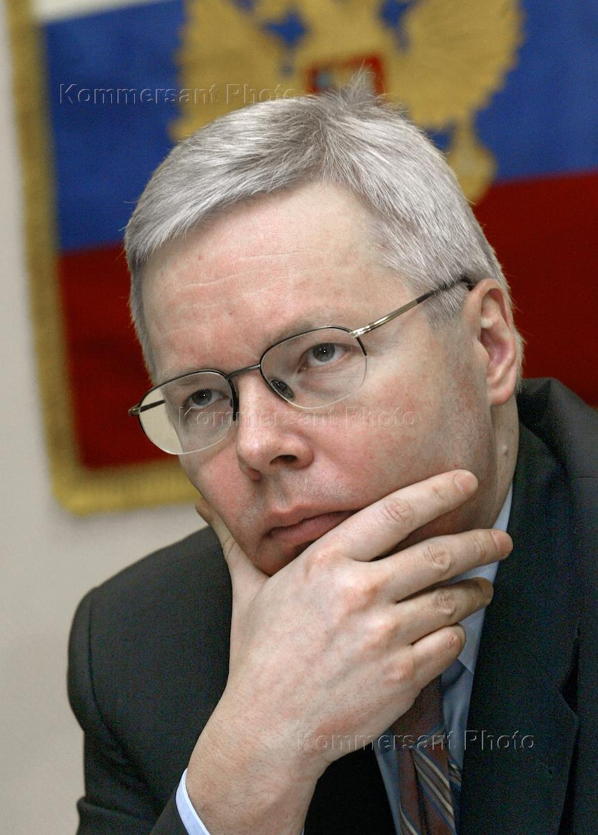 President of Alrosa company Vladimir Kalitin is interviewed at the news conference summoned to announce the Alrosa 2003 results. The conference was held in the Alrosa Na-Kazachyem Hotel.