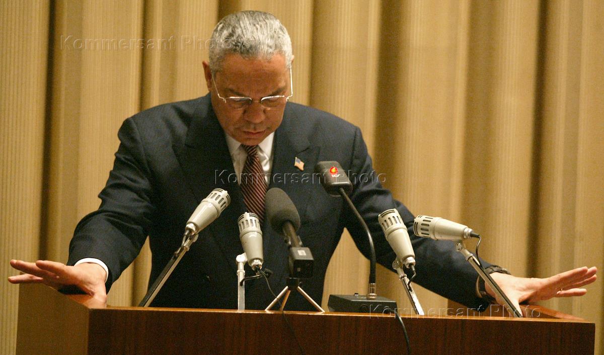 US State Secretary Colin Powell addresses the All-Russian conference of NGOs fighting human trafficking during his official visit to Moscow.