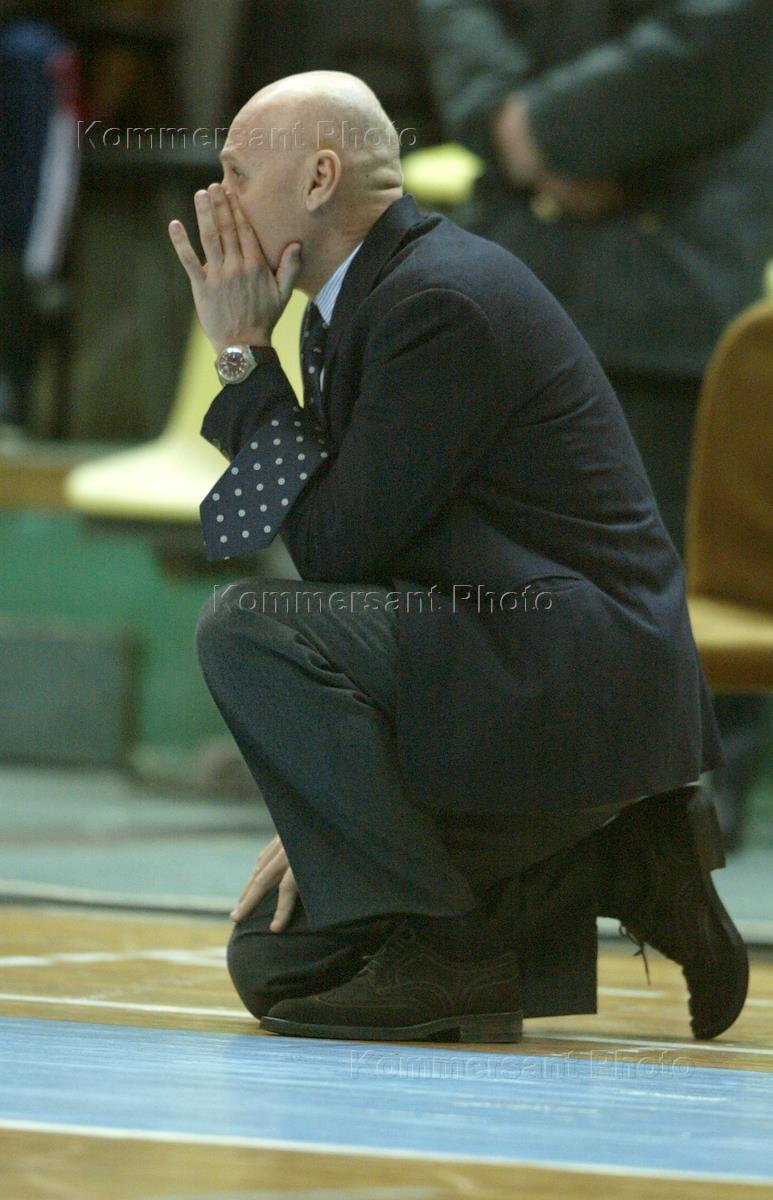 Chief coach of the Moscow Dinamo female basketball club Fabio Fossati watches his trainees during the match between Dinamo and Slavyanka-CKPZ of Chelyabinsk. The match was played in the Dinamo Sports Palace.