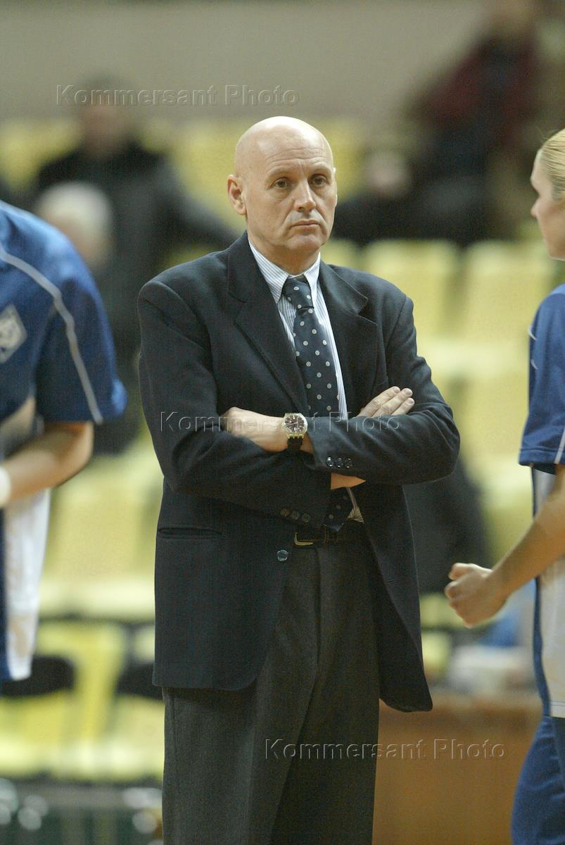 Главный тренер команды "Динамо" (Москва) по баскетболу среди женщин Фабио Фоссати наблюдает за игрой своей команды во время чемпионата России в матче с командой "Славянка-ЧКПЗ" (Челябинск). Чемпионат прошел во Дворце спорта "Динамо".