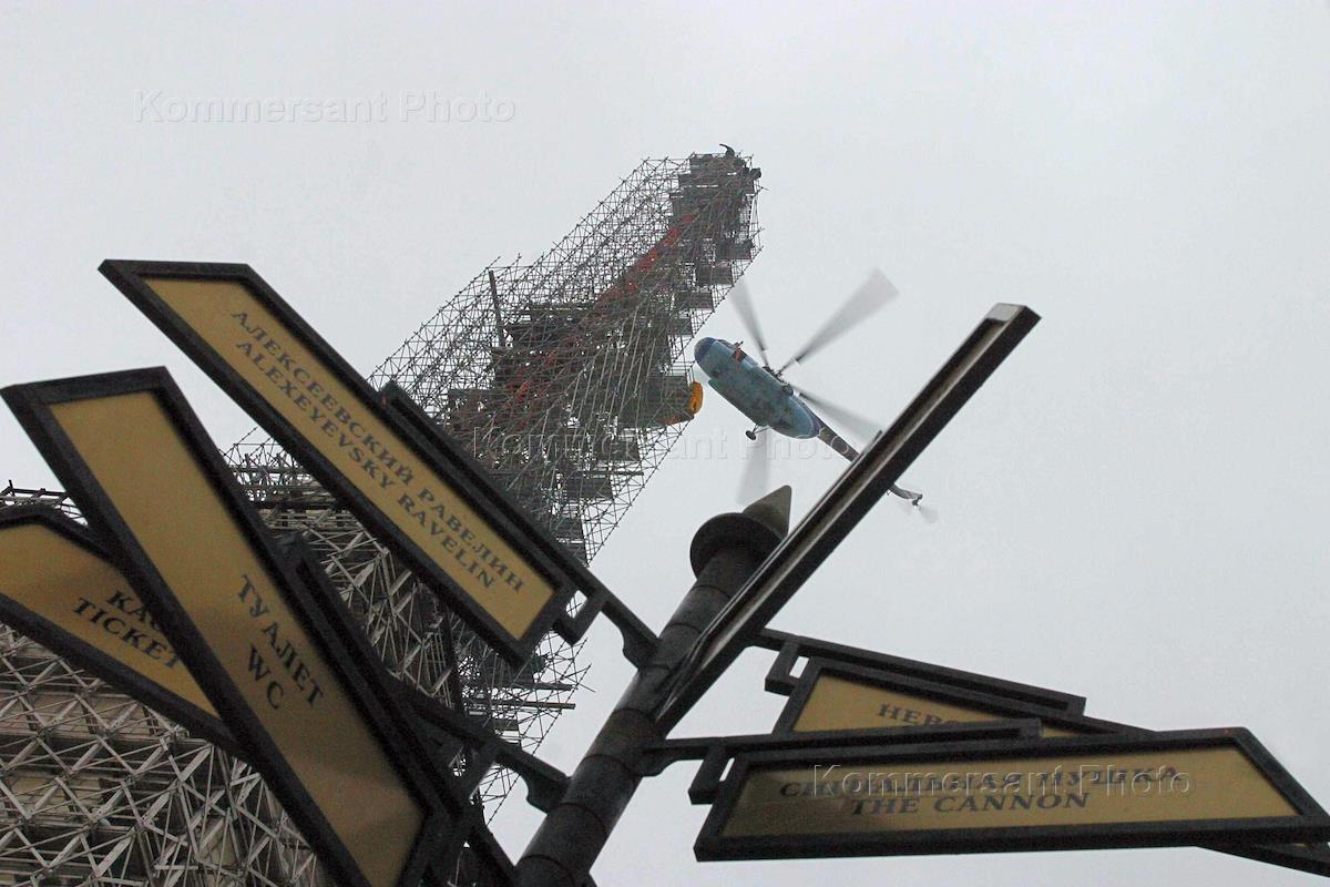 Реконструкция Санкт-Петербурга к трехсотлетнему юбилею. Первый этап установки ангела на шпиле Петропавловского собора.