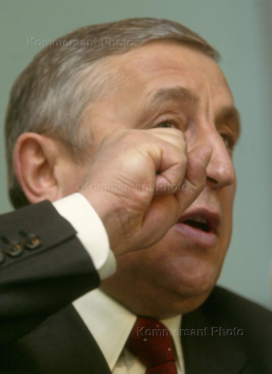 Member of the State Duma Nikolay Kharitonov, nominated by the Communist Party (KPRF) to run for Russian presidency, is interviewed at the news conference summoned to present his electoral programme. The news conference was held in the RIA-Novosti news agency.