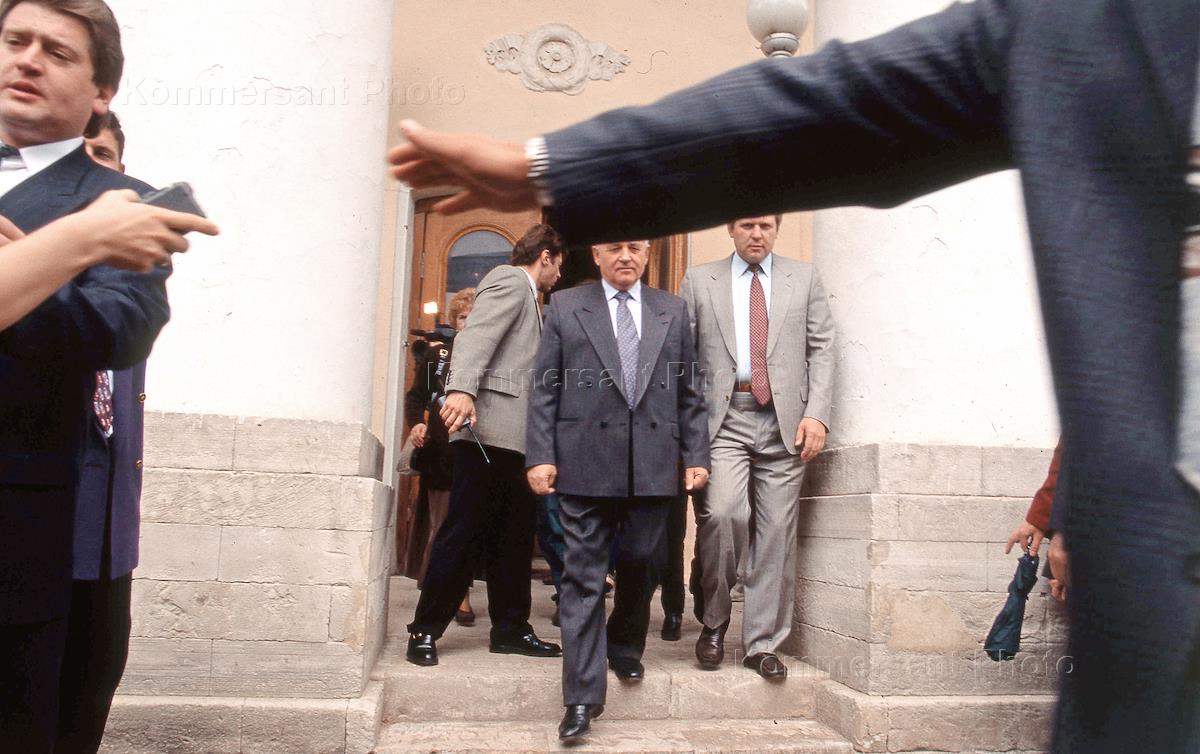 Выборы президента России. Кандидат на должность президента России Михаил Горбачев (в центре) после голосования на избирательном участке.