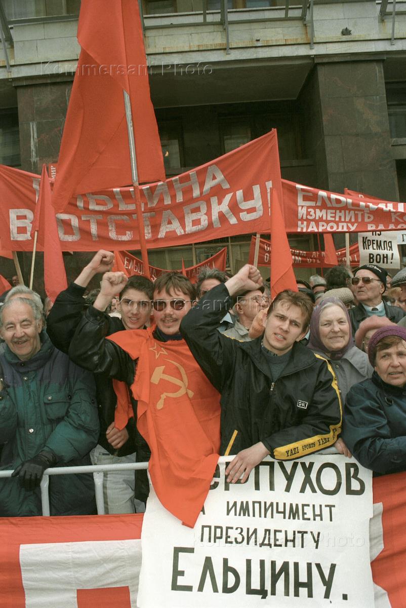 Activist of the Communist Party (KPRF) take part in a rally staged to demand President Boris Yeltsin's resignation.