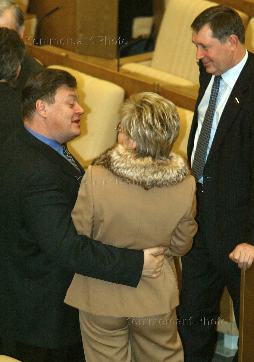 Left to right: vice speaker of the State Duma Lybov Sliska, leader of the Rodina ('Motherland') faction Dmitry Rogozin, and Speaker Boris Gryzlov take part in a session of the legislature.