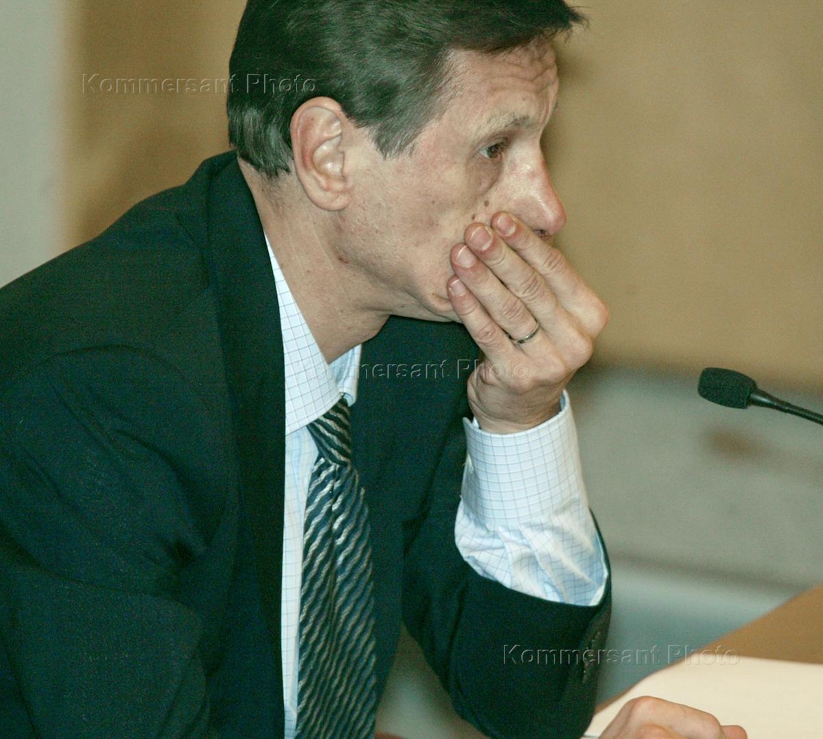Member of the State Duma Industries, Construction and Technologies Committee Gennady Seleznev (centre) chats away with other legislators during a plenary session.