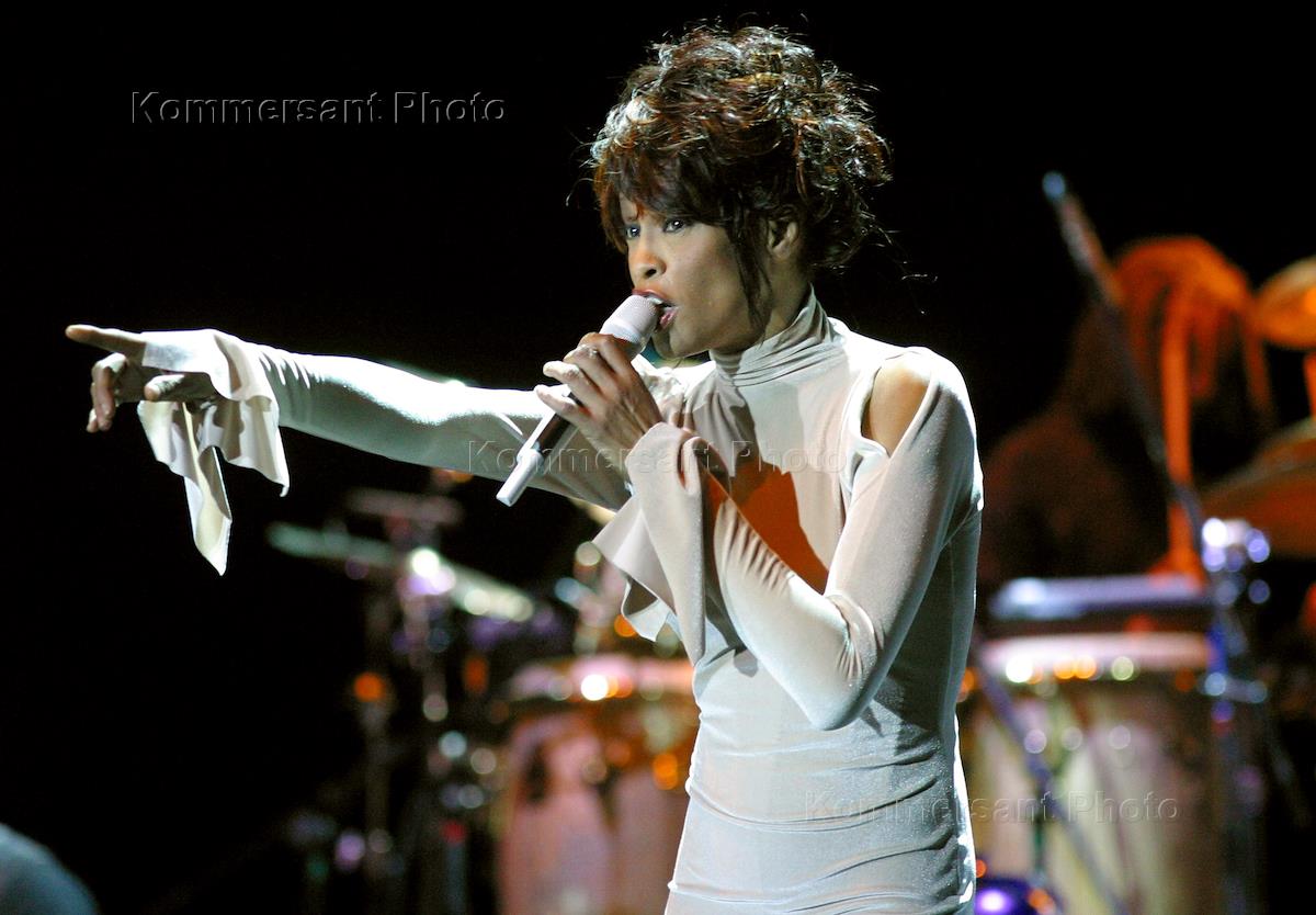 American pop diva Whitney Houston performs in the St.Petersburg Ice Palace on her tour to Russia.
