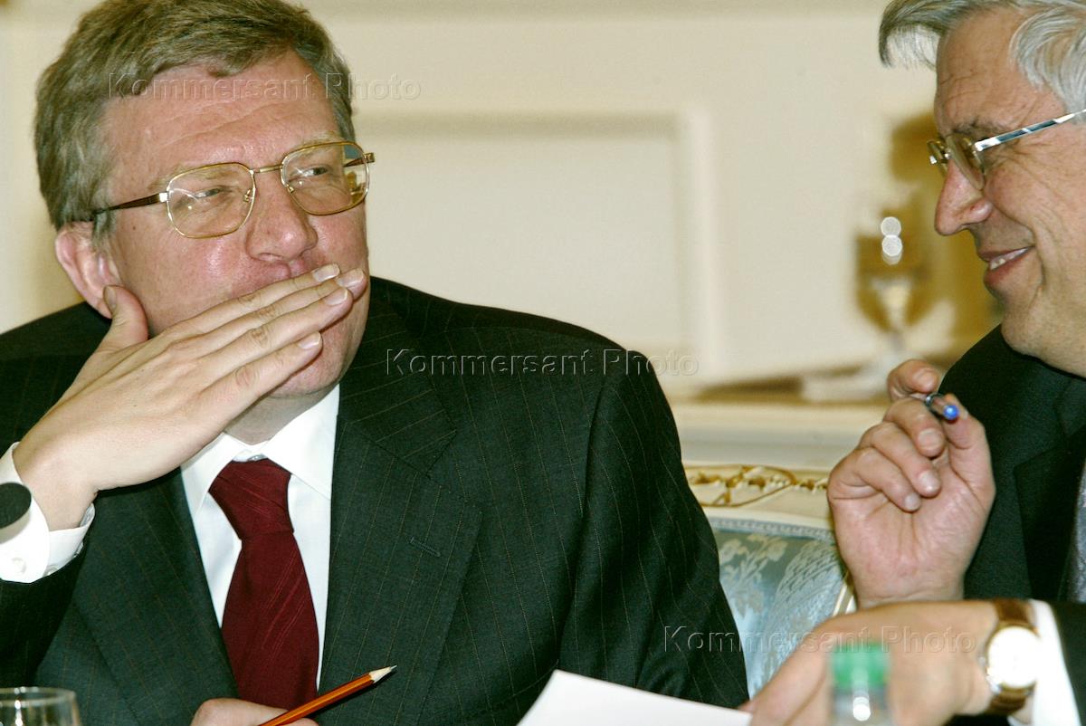 Заместитель председателя Правительства России, министр финансов Алексей Кудрин (слева) и председатель Центрального Банка России Сергей Игнатьев (справа) на заседании Совета министров Союзного государства России и Белоруссии. Заседание прошло в здании Правительства России.