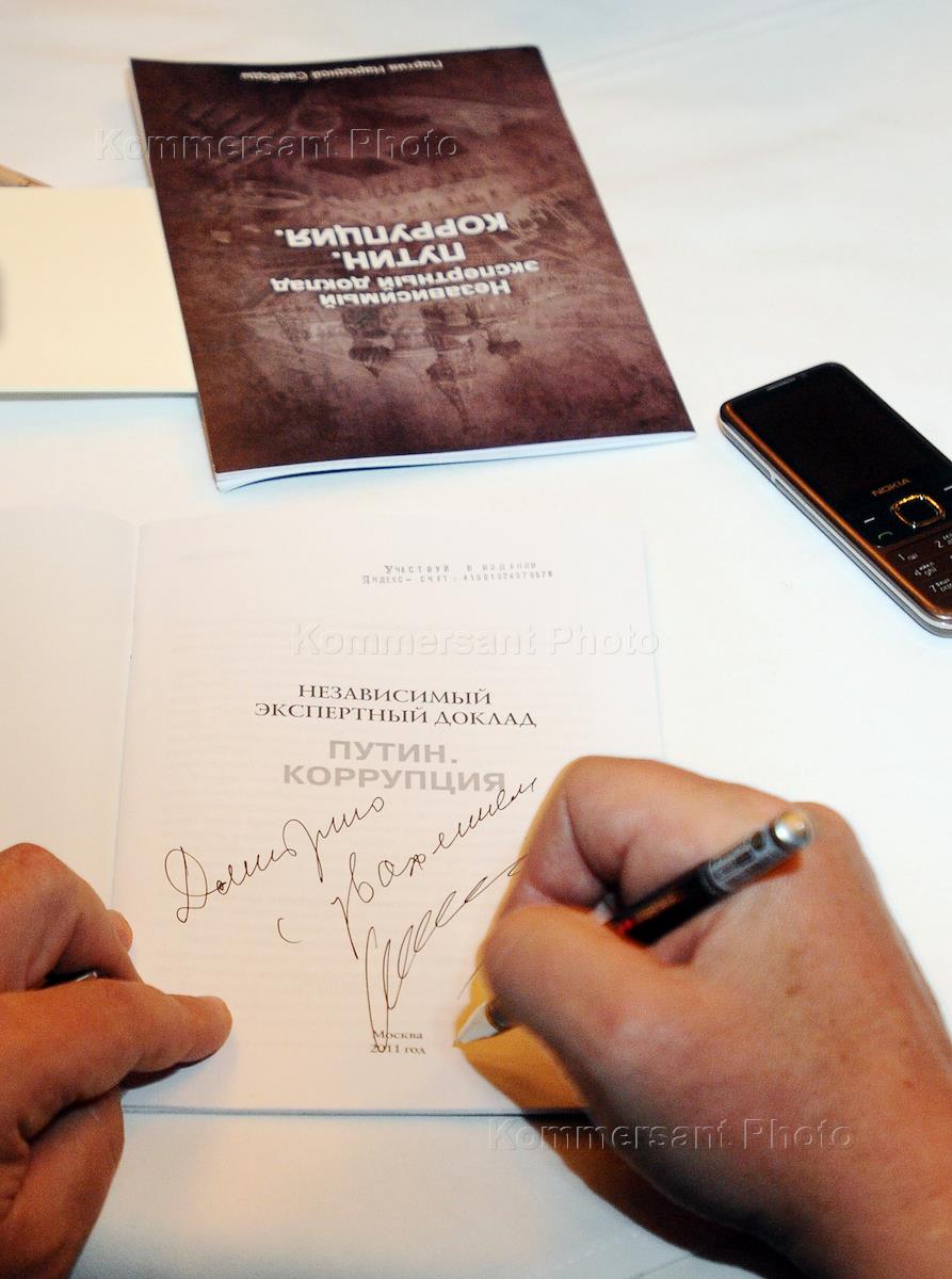 Сопредседатель оппозиционного движения "Солидарность" Борис Немцов во время представления "Независимого экспертного доклада Путин. Коррупция." в конференц-зале гостиницы "Англетер".