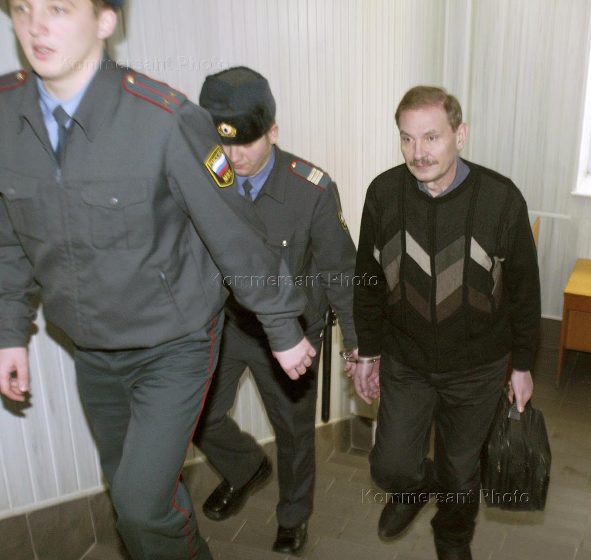 The former first deputy head in finance of the "Aeroflot" company Nikolay Glushkov (right) before the beginning of the Savelovsky intermunicipal court session about case of the "Aeroflot" cash misappropriation. Glushkov is accused of laundering company's money and swindling.