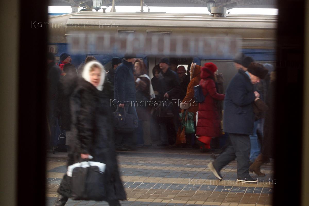 Жанровая фотография. Ярославский вокзал. Пассажиры выходят из вагона электрички.