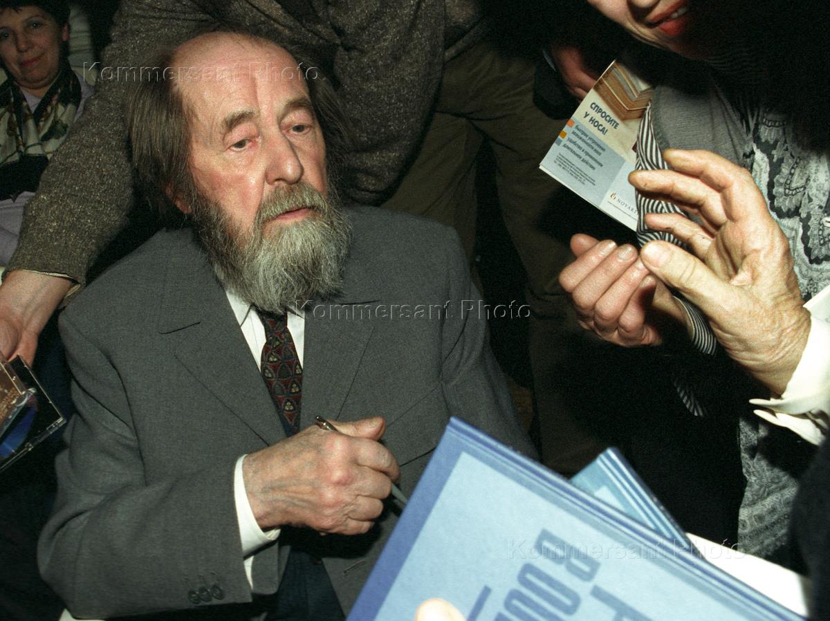 Писатель Александр Солженицын перед концертом пианиста Игната Солженицына. Концерт сына писателя прошел в Большом зале консерватории.