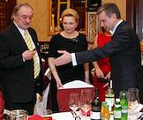 Artistic Director of Ivan Franko Theater, actor, Bogdan Stupka (left) Secretary of the national security and defense Council of Ukraine Raisa Bogatyryova and Ambassador extraordinary and Plenipotentiary of the Russian Federation to Ukraine Mikhail Zurabov.