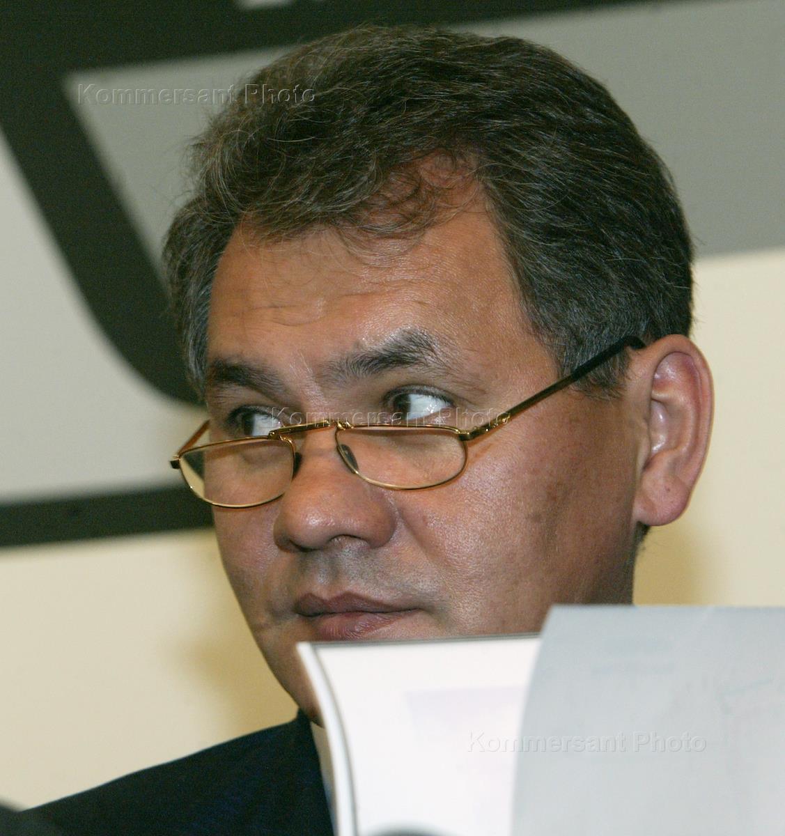 Russian Emergency Minister Sergey Shoygu took part in the press conference "Tragedy in "Transvaal park". The press conference was held in the newspaper "Moscovsky komsomolets" (MK) press-centre. After the press-conference minister received as a present a T-shirt with the Emergency Ministry abbreviation.
