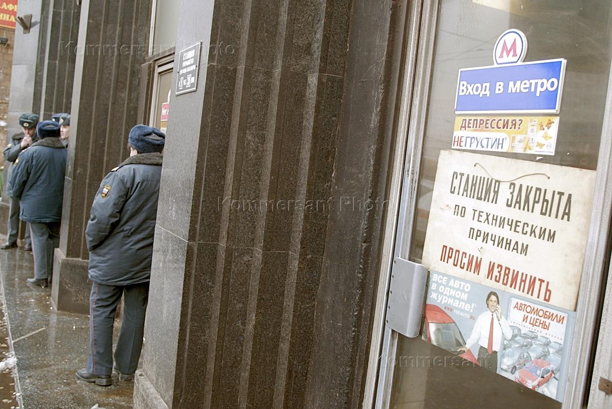 Russian police guard the Avtozavodskaya metro station closed after the terrorist attack in the railway tunnel.