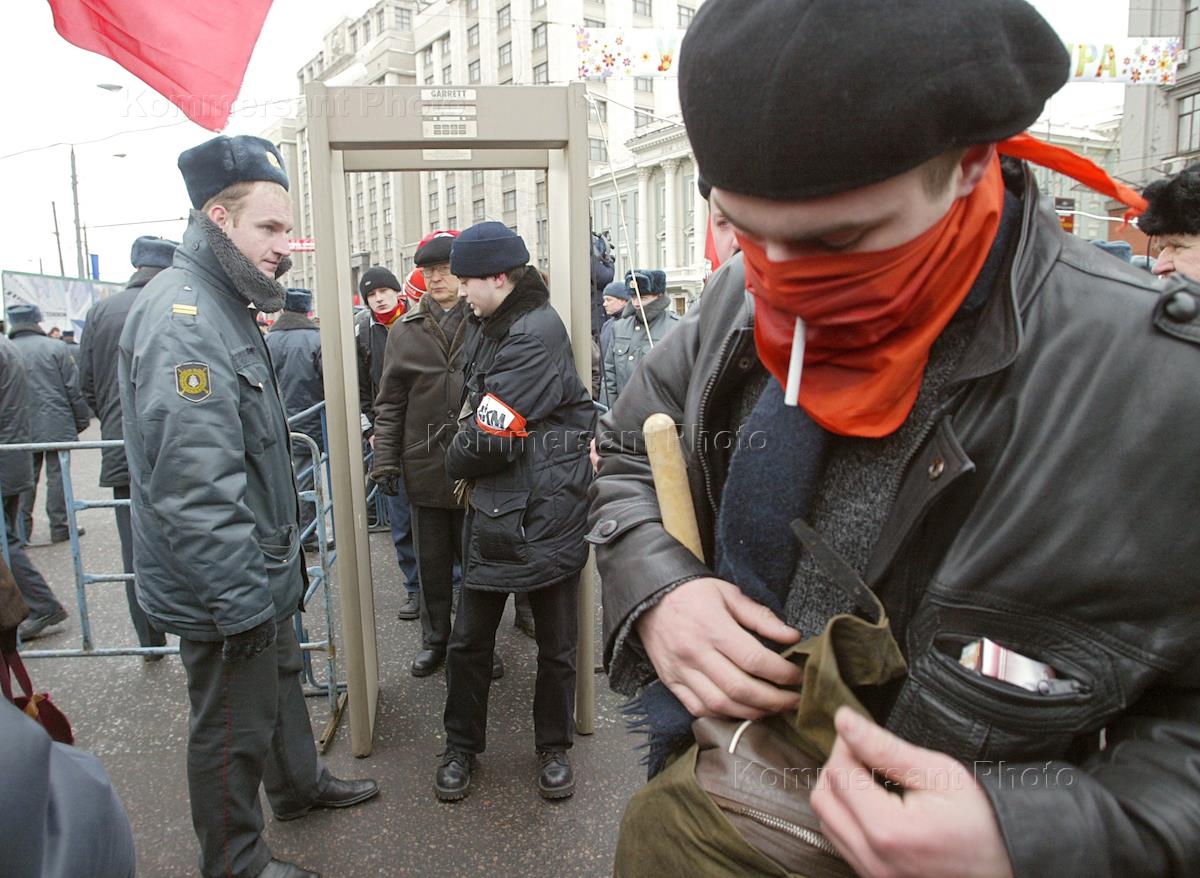 Activists of Russian leftist movements and parties are searched by the police to get access to Red Square on Fatherland Defender Day - February 23.