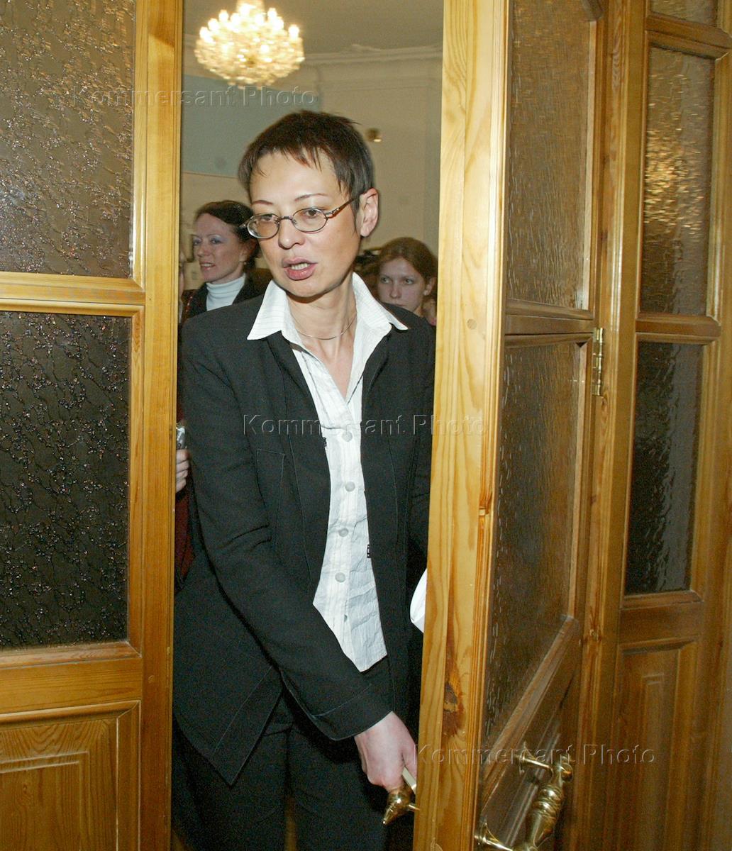 Кандидат на должность Президента России Ирина Хакамада перед началом дебатов с руководителем фракции "Родина" в Государственной Думе России Сергеем Глазьевым в информационном агентстве "Росбалт".