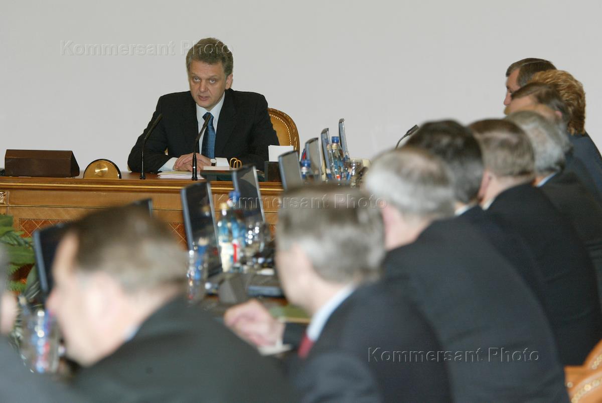 Russian Acting Prime Minister Victor Khristenko (left) for the first time opens the government meeting in this capacity.