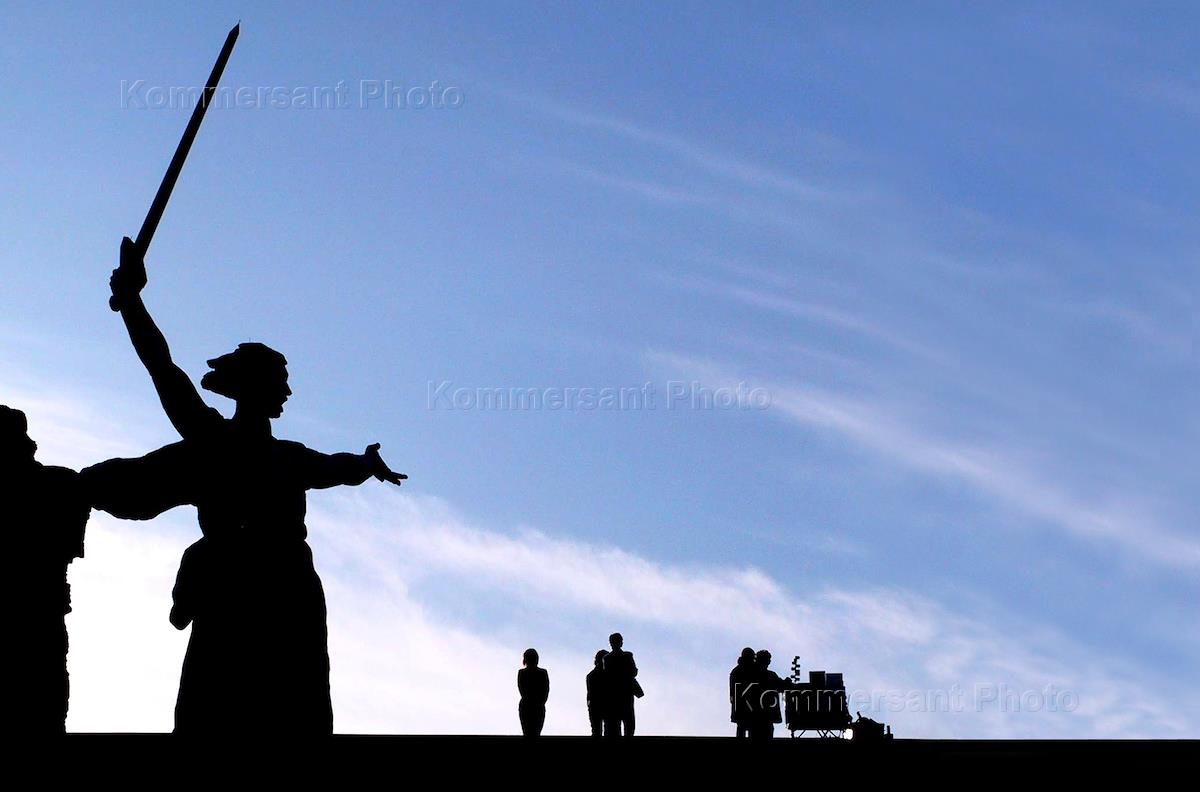 The sculpture "Rodina-Mat' zovet (Native land-mother is calling)" of the monument-ensemble to Stalingrad battle Heroes on the Mamaev barrow. The author of the monument-ensemble is the sculptor, the people's artist of the USSR Evgeny Vuchetich.
