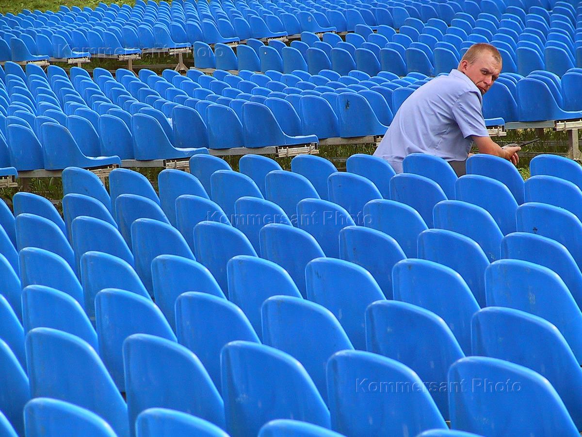 Подготовка к концерту на территории Псковского кремля. Мужчина сидит в пустом зале.