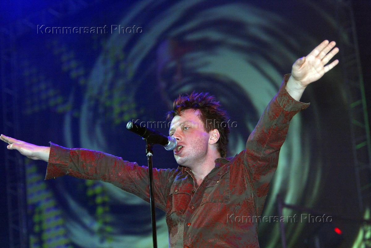 Певец Вячеслав Бутусов во время выступления на "Итоговом годовом концерте хит-парада "Нашего радио" "Чартова дюжина" во Дворце спорта "Лужники".