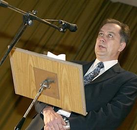 Глава федерального агентства России по печати Михаил Сеславинский во время представления нового министра культуры и массовых коммуникаций России и глав подведомственных министерству федеральных агентств сотрудникам министерства. Представление прошло в здании информационного агентства "ИТАР-ТАСС".