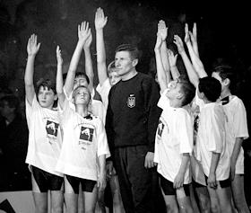 Герой Украины, выдающейся легкоатлет, олимпийский чемпион, 35-кратный рекордсмен и 6-кратный чемпион мира Сергей Бубка на турнире "Звезды шеста".