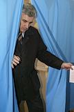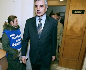 Второй тур губернаторских выборов. Кандидат на пост губернатора Архангельской области, глава ОАО "Молоко" Николай Киселев во время голосования на избирательном участке.