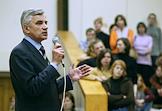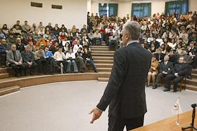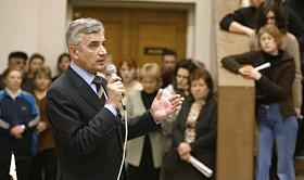 Кандидат на пост губернатора Архангельской области, глава ОАО "Молоко" Николай Киселев во время выступления перед избирателями перед вторым туром губернаторских выборов.