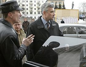 Кандидат на пост губернатора Архангельской области, глава ОАО "Молоко" Николай Киселев (справа) перед вторым туром губернаторских выборов.