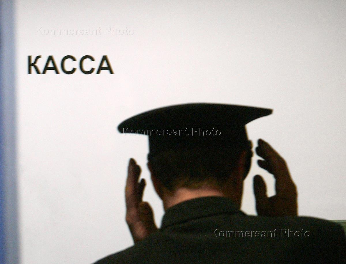 Аэропорт "Домодедово". Человек у билетной кассы аэропорта.