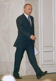 Президент России Владимир Путин в Мраморном зале Кремля во время ежегодного послания.
