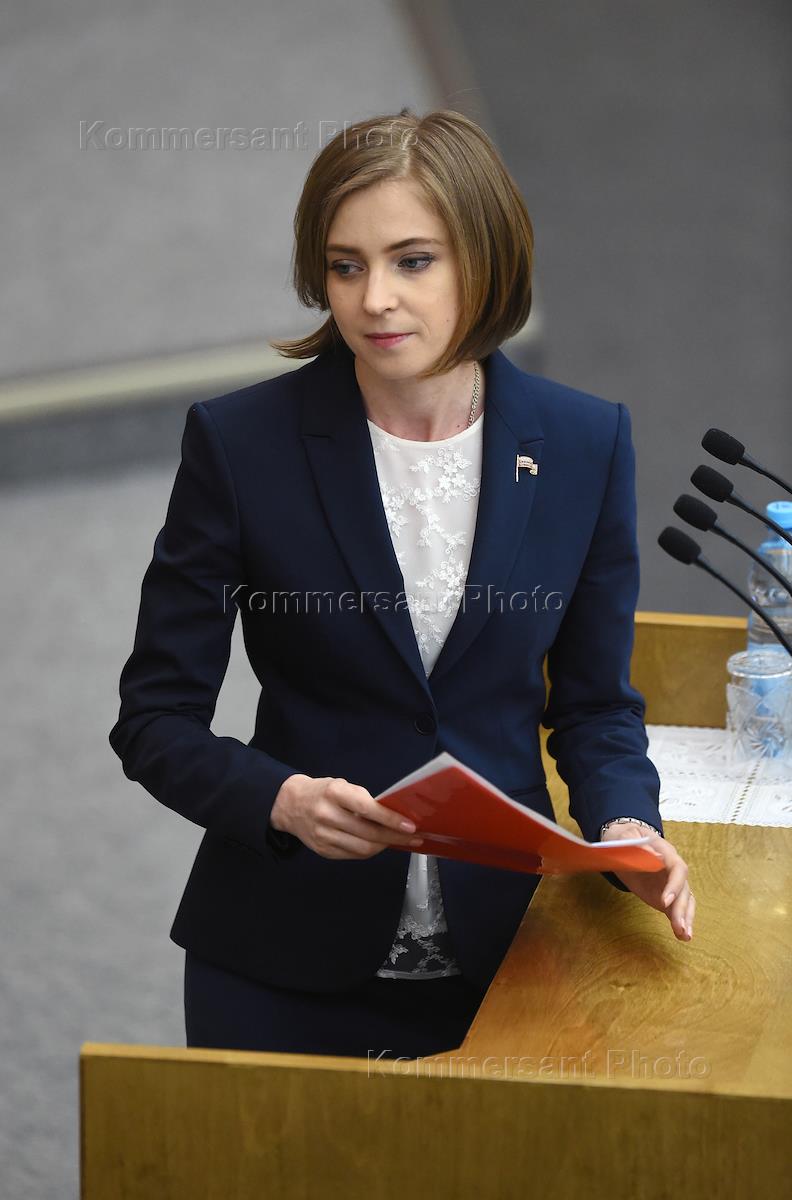 Пленарное заседание Государственной думы (ГД) России. Заместитель председателя комитета ГД России по безопасности и противодействию коррупции Наталья Поклонская во время заседания.