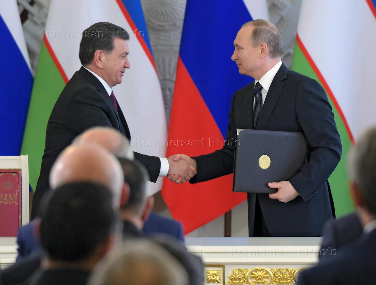 Встреча президента России Владимира Путина с президентом Узбекистана Шавкатом Мирзиёевым в Кремле.