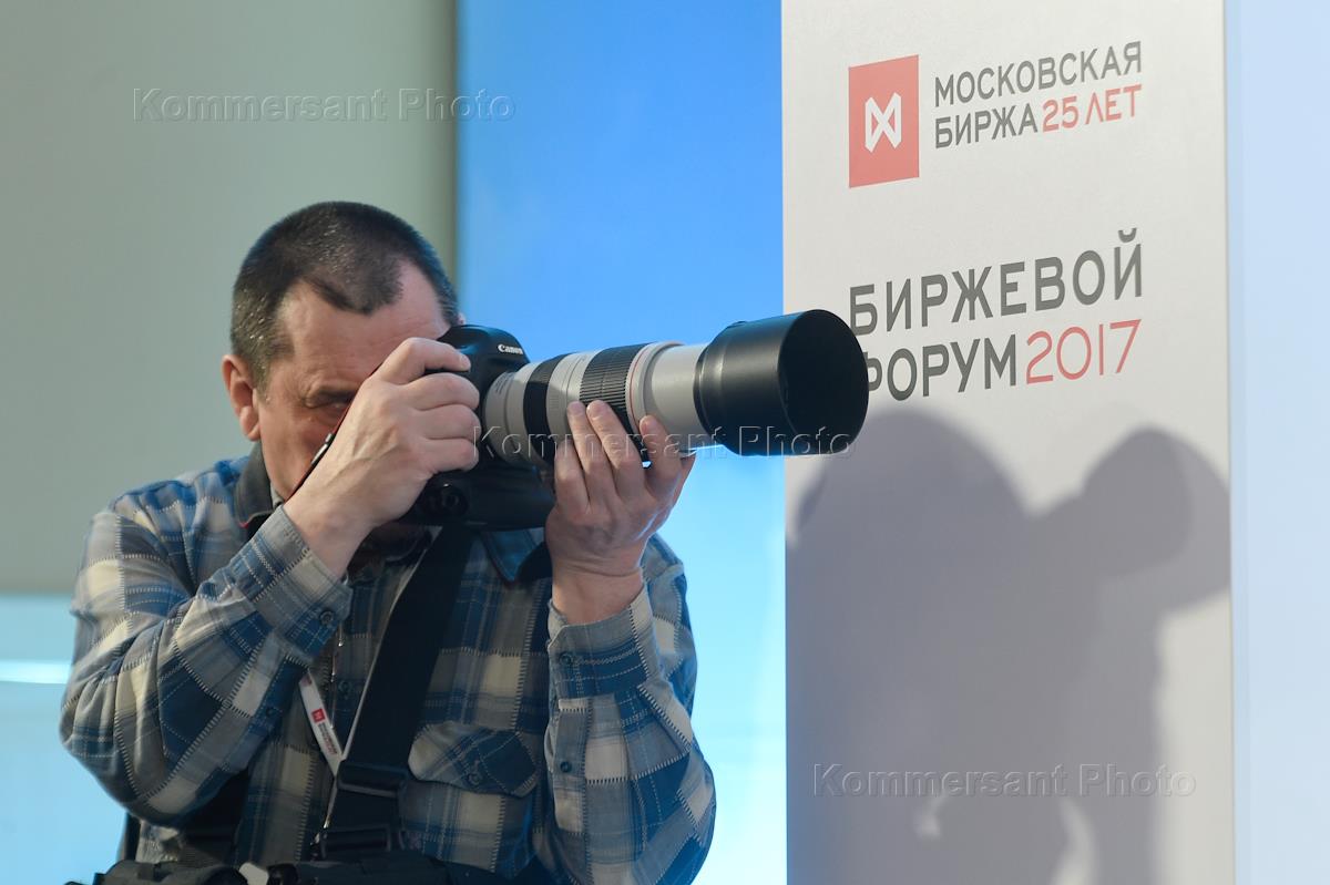 VIII Биржевой Форум в отеле "Ритц-Карлтон". Фотограф Виктор Васенин во время работы на форуме.