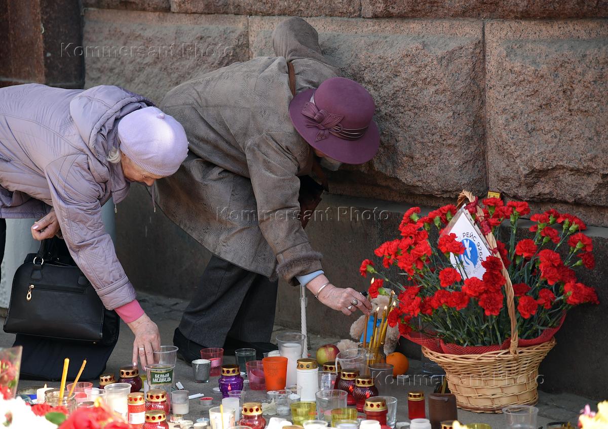 People bring flowers to the Tekhnologichesky Institut subway station to commemorate victims of bombing during a three-day mourning.