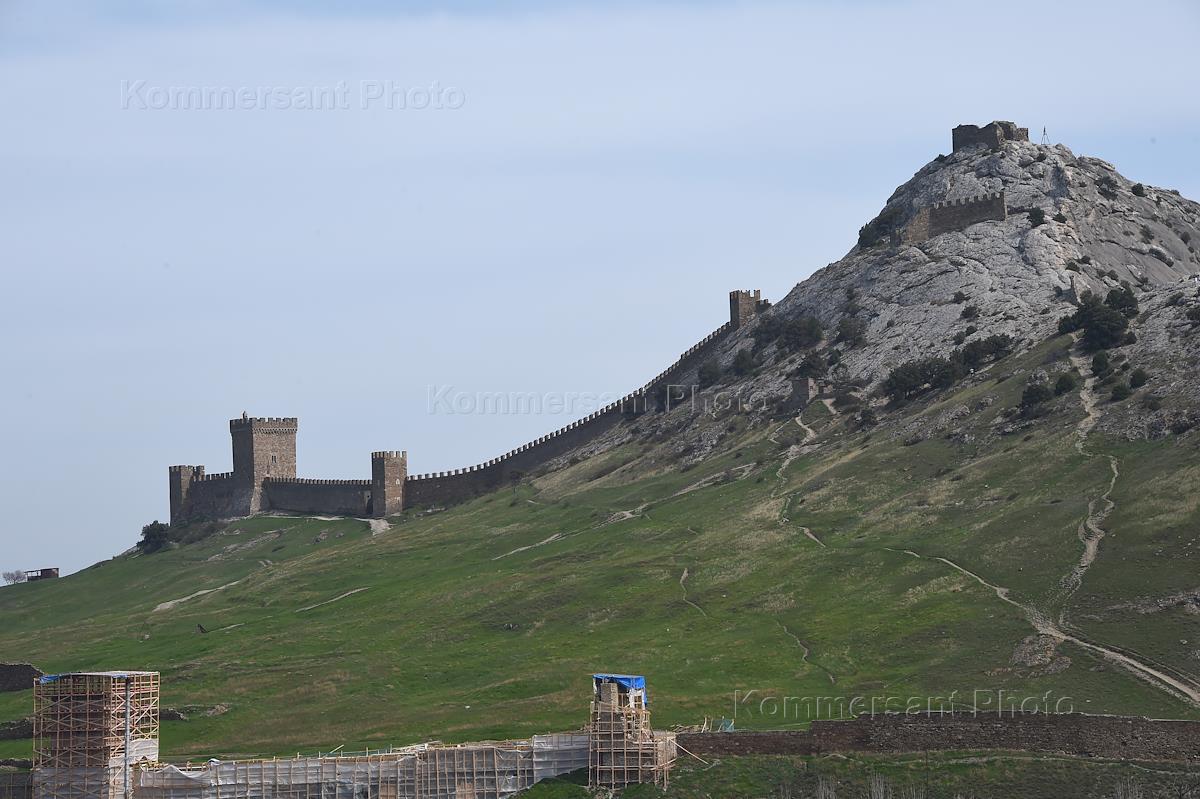 Виды Крыма. Судак. Генуэзская крепость вр время реставрации.