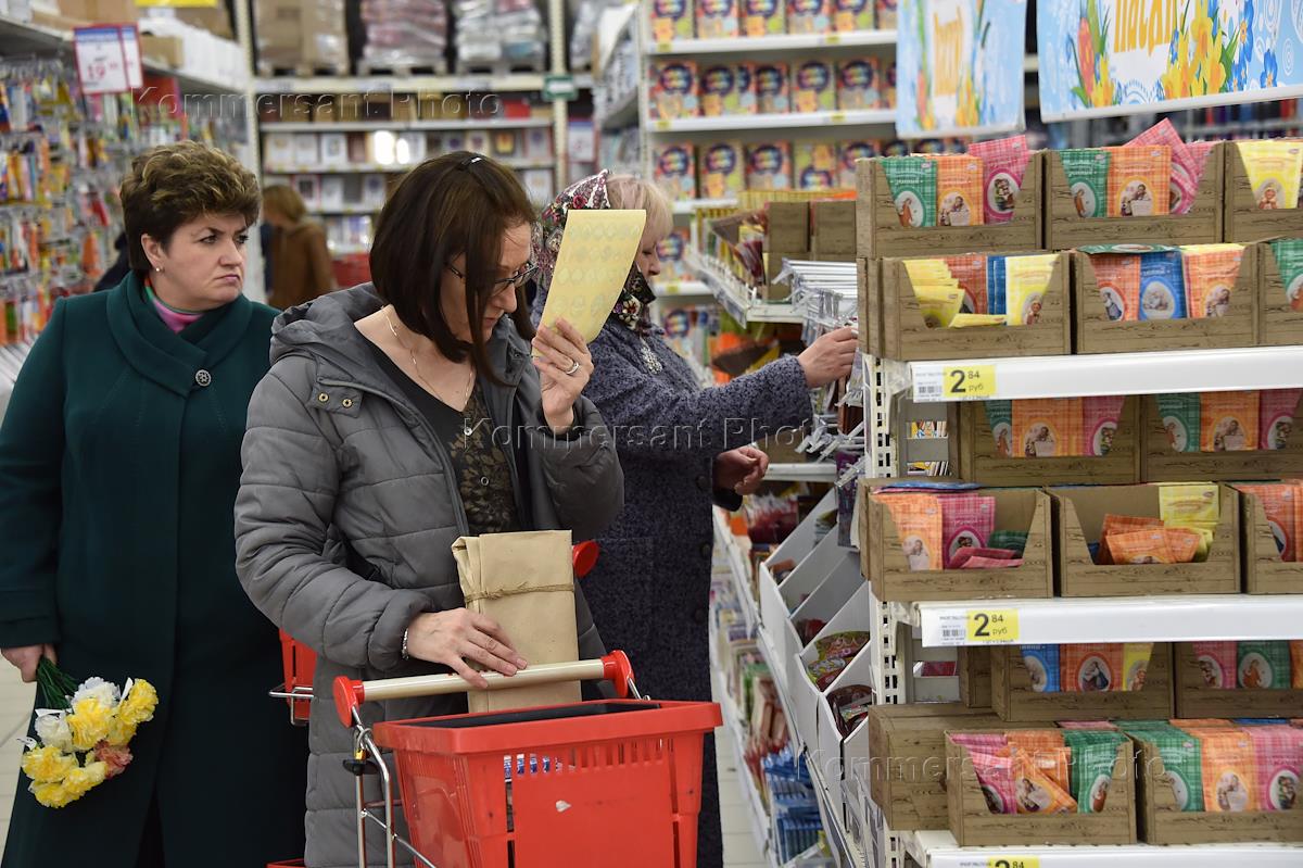 Жанровые фотографии. Покупатели на кассе в гипермаркете "Ашан".