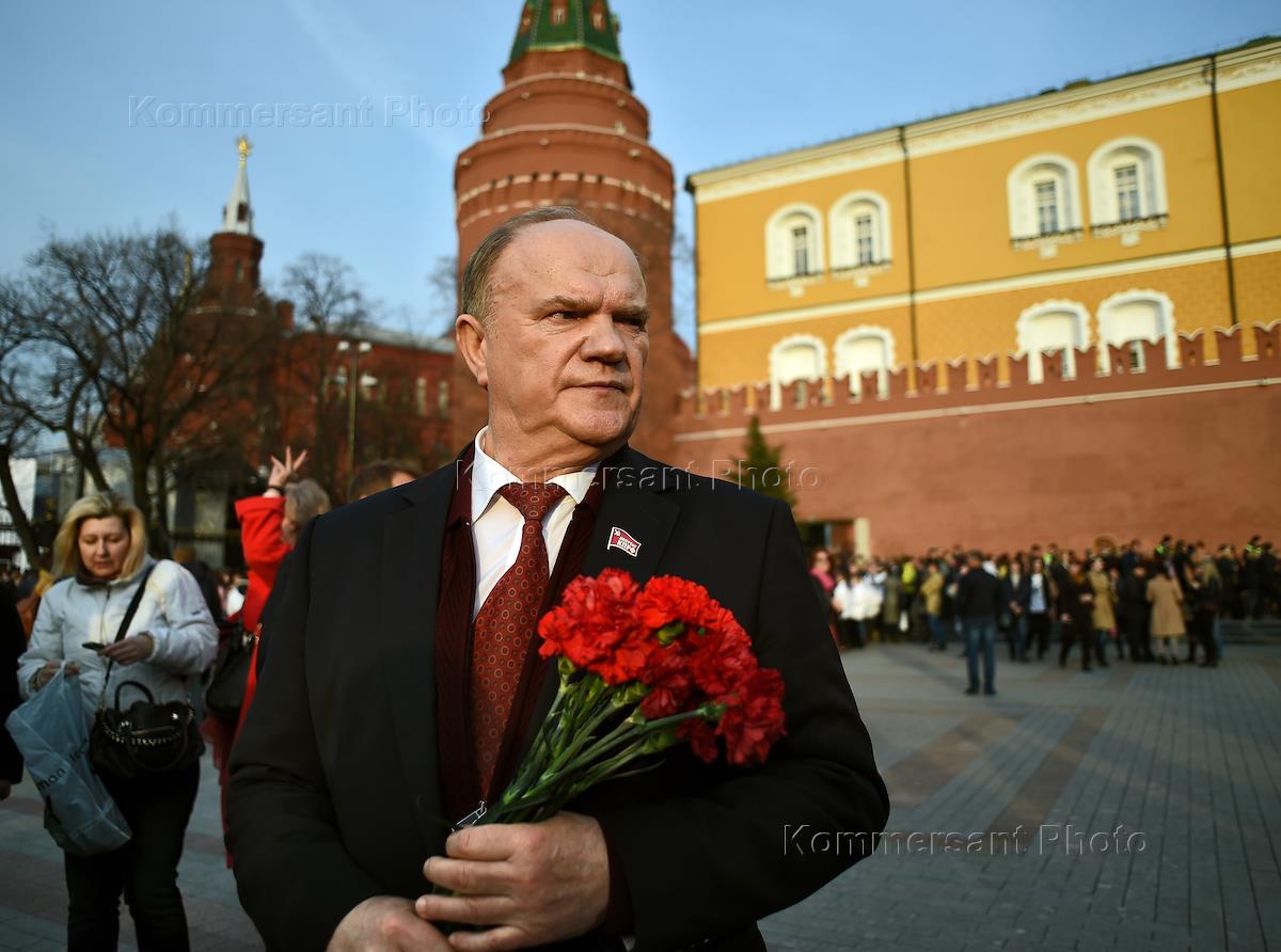 Head of the Communist Party faction Gennady Zyuganov brings flowers to the monument dedicated to Hero-City Leningrad in the alley of hero-cities to commemorate victims of bombing on Saint Petersburg metro.