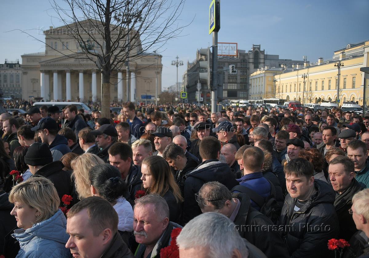 People hold a rally to commemorate victims of bombing on Saint Petersburg metro in Manezhnaya Square.