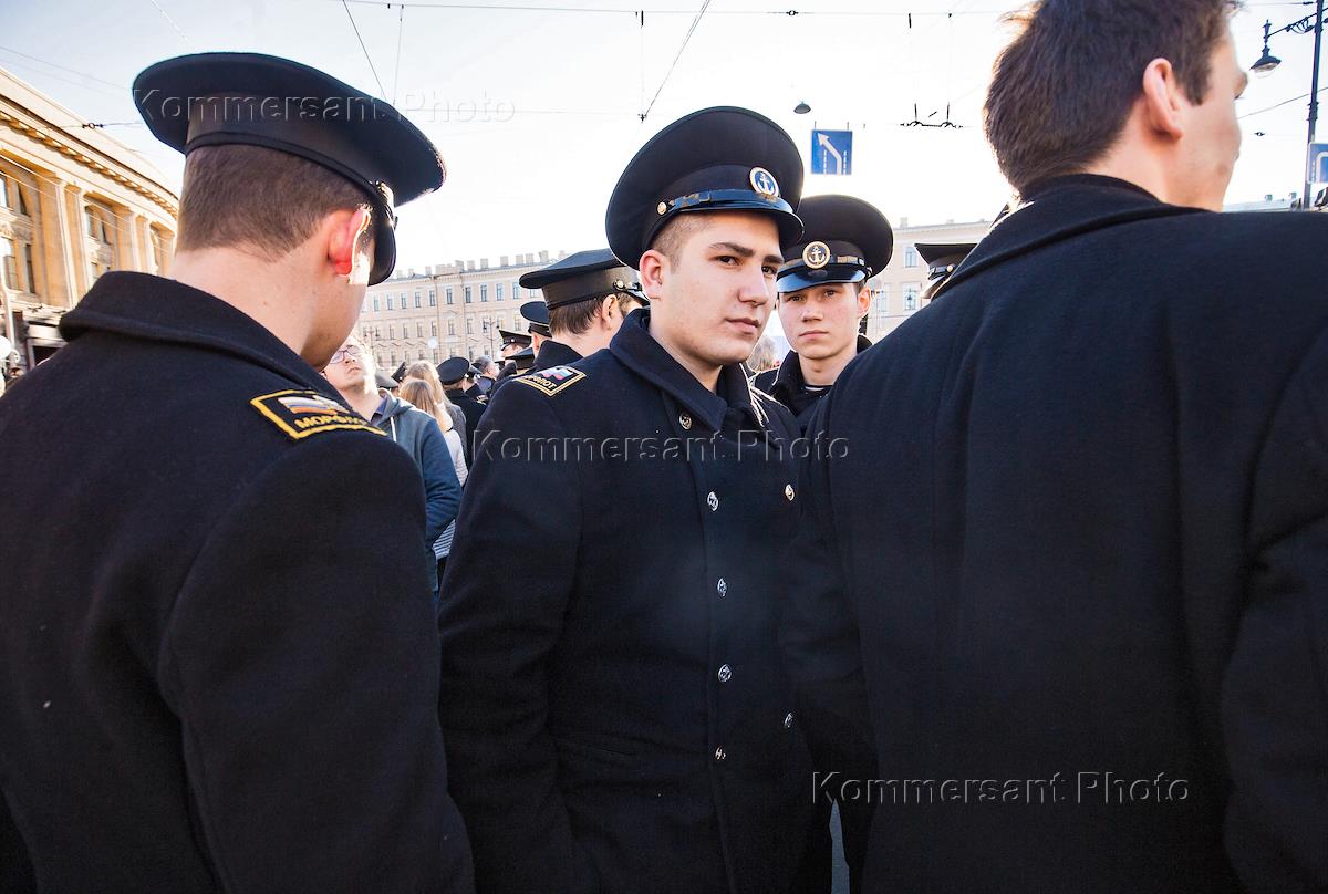 Акция в память о жертвах теракта в метро Санкт-Петербурга на Технологической площади у станции метро "Технологической институт". Сотрудники полиции во время досмотра участников акции.