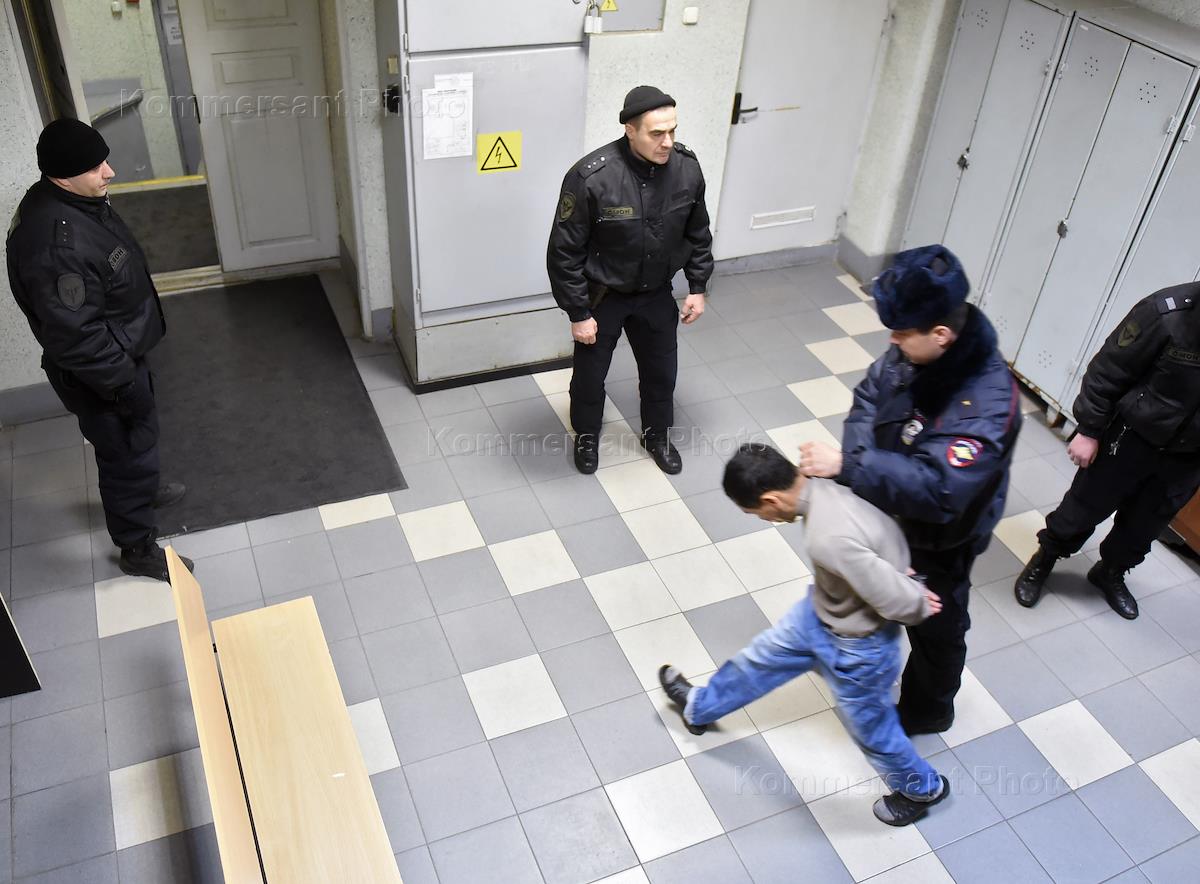 Один из задержанных по подозрению в причастности к теракту в метрополитене Санкт-Петербурга 3 апреля после избрания меры пресечения в Октябрьском районном суде.