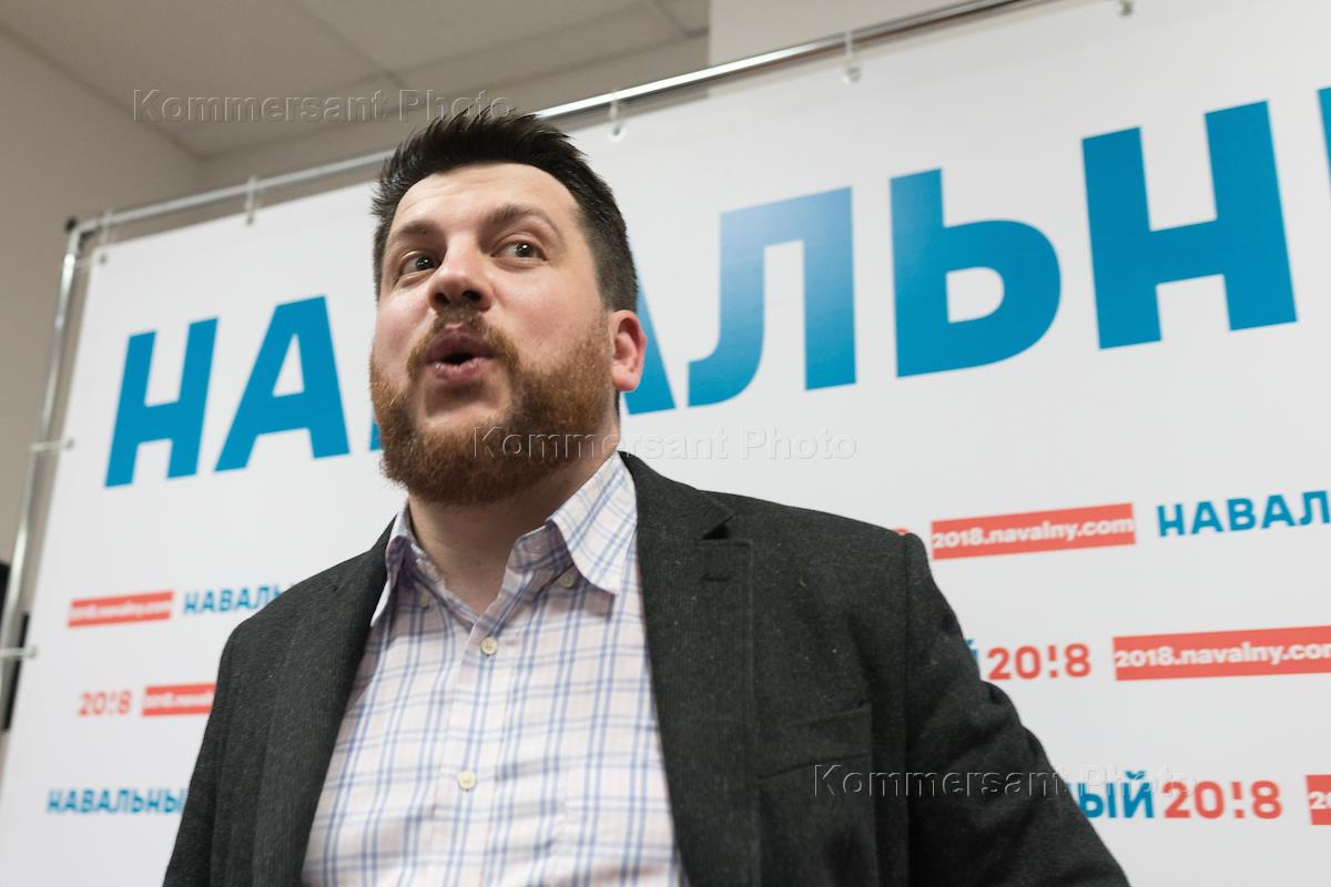 Head of the opposition leader Alexey Navalny's campaign headquarter, Leonid Volkov, speaks at the opening of headquarter ahead of the presidential election.