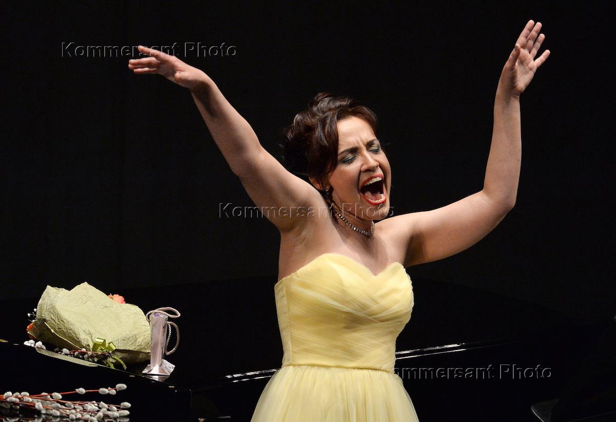 Solo concert of the soloist of the Perm Opera and Ballet Theater Nadezhda Pavlova at the Moscow International House of Music. Singer Nadezhda Pavlova during the concert.