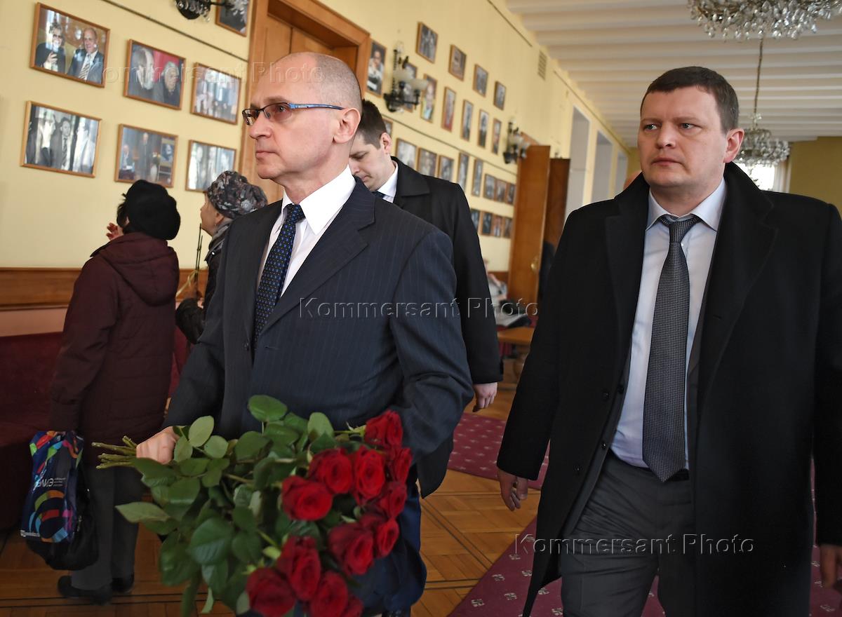 Гражданская панихида по поэту Евгению Евтушенко прошла в Центральном Доме литераторов. Первый заместитель главы администрации президента России Сергей Кириенко (слева) во время панихиды.