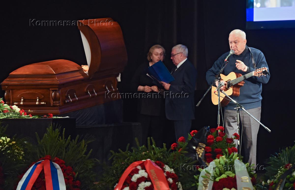 Гражданская панихида по поэту Евгению Евтушенко прошла в Центральном Доме литераторов. Бард Сергей Никитин во время панихиды.