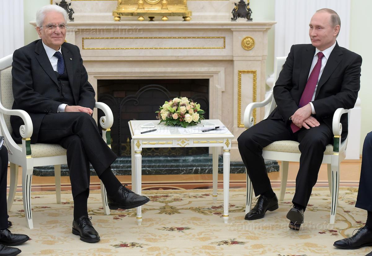 Russian President Vladimir Putin, right, meets with his Italian counterpart Sergio Mattarella (left) at the Kremlin.