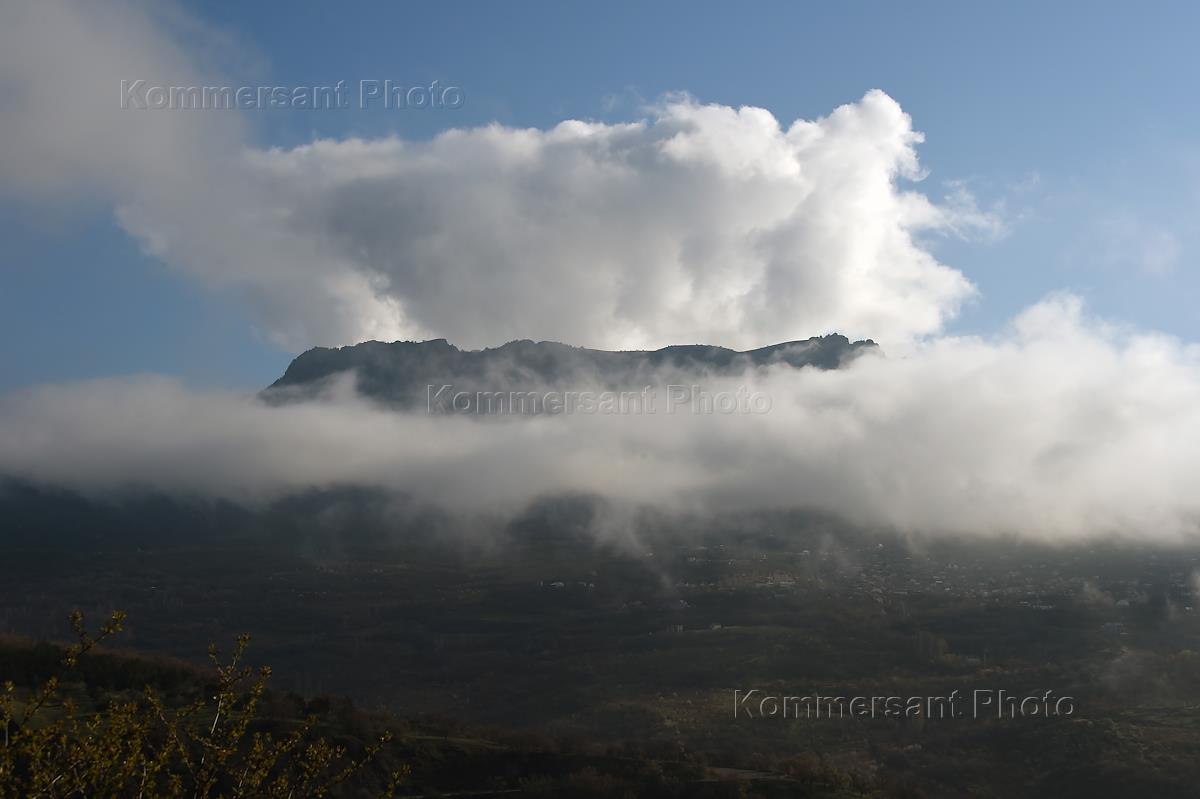 Виды Крыма. Гора Демерджи в облаках.