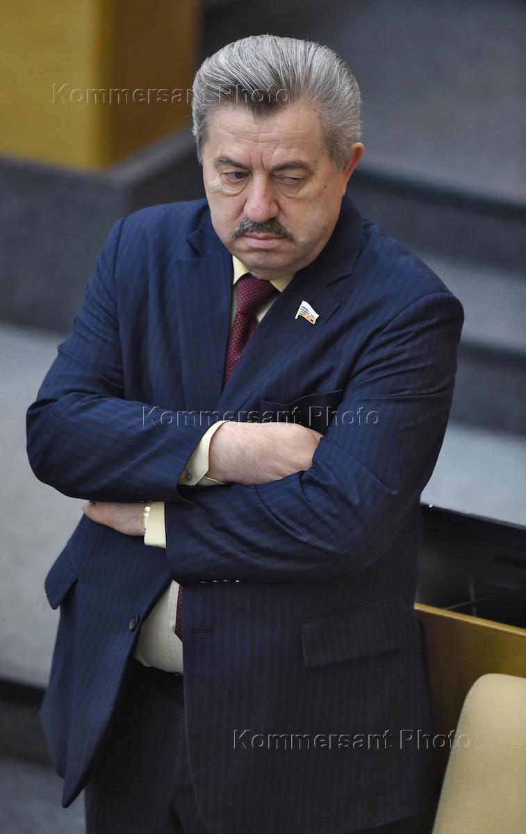 Пленарное заседание Государственной думы (ГД) России. Заместитель председателя комитета ГД России по делам Содружества Независимых Государств, евразийской интеграции и связям с соотечественниками Виктор Водолацкий во время заседания.