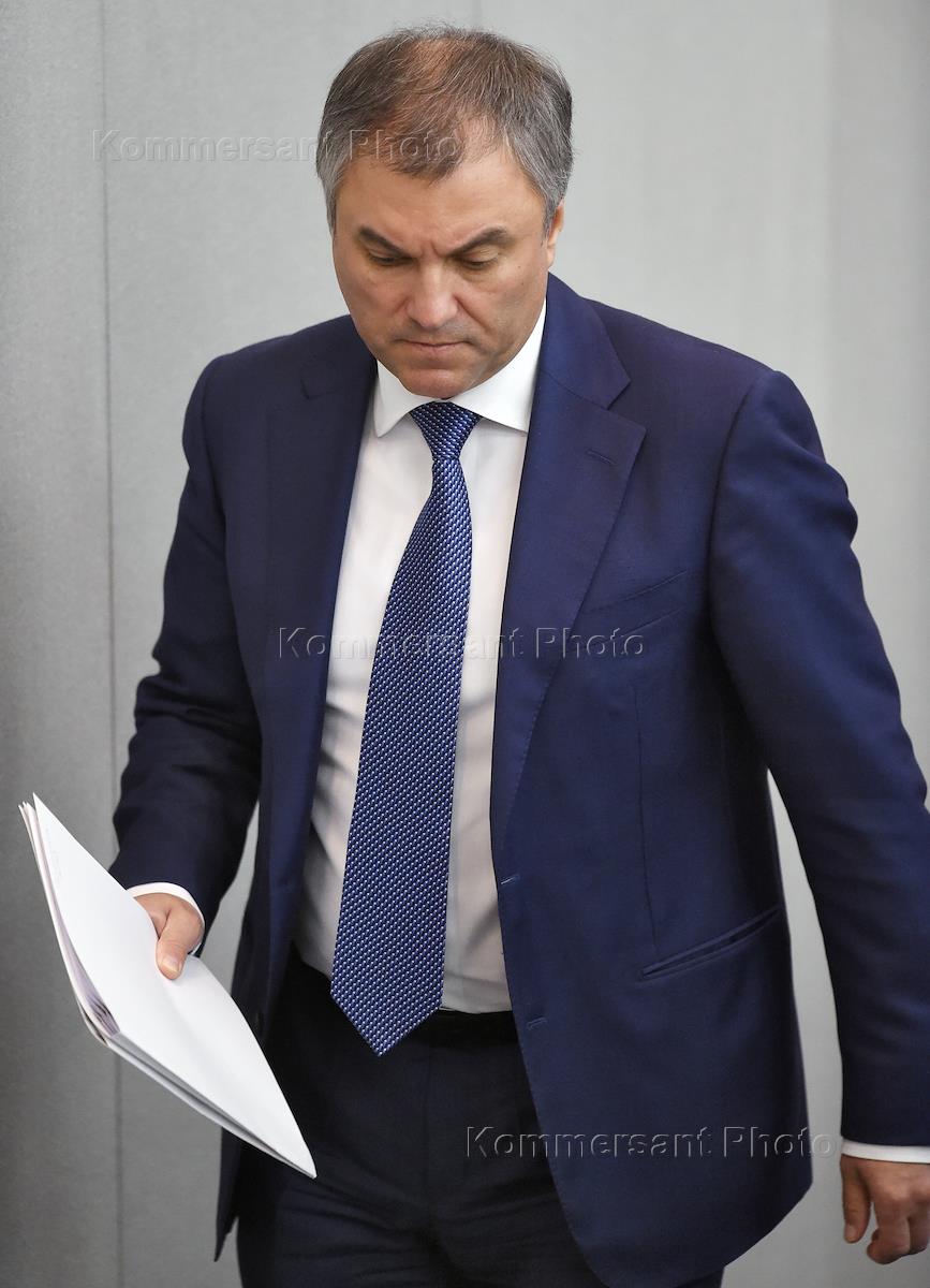 Пленарное заседание Государственной думы (ГД) России. Председатель ГД Росси Вячеслав Володин во время заседания.